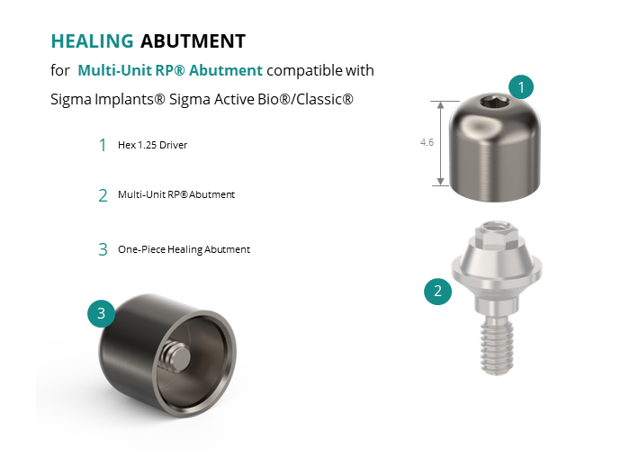 - One-piece healing abutment for easy placement, no extra screws needed.