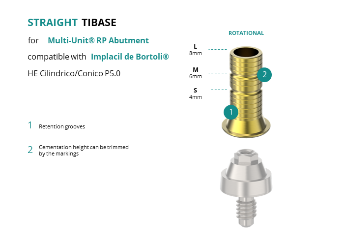 Titanium Straight Base for Multi-Unit® RP Abutment compatible with Implacil de Bortoli® HE Cilindrico/Conico P5.0