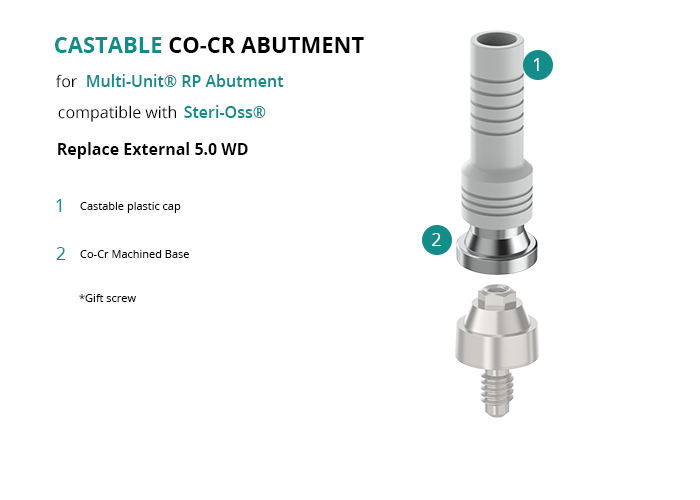 Castable Abutment with Co-Cr Base for Multi-Unit® RP Abutment compatible with Steri-Oss® Replace External 5.0 WD
