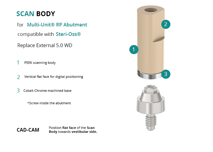 Scan Body for Multi-Unit® RP Abutment compatible with Steri-Oss® Replace External 5.0 WD