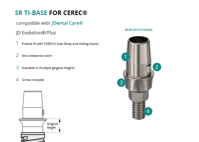 SR Titanium Base for CEREC® compatible with JDental Care® JD Evolution®/Plus