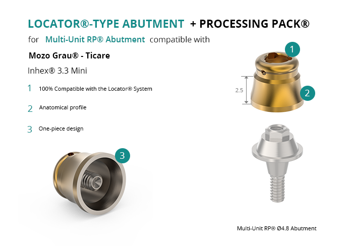 Locator®-Type Abutment for Multi-Unit® RP Compatible with Mozo Grau® - Ticare Inhex® 3.3 Mini