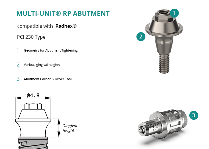 Multi-Unit® RP Abutment compatible with Radhex® PCI 230 Type