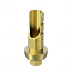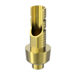 GT-Medical's Angled Ti-Base are compatible with Tapered 4.5 implants from Biohorizons®, ensuring a stable and long-lasting connection between the implant and the prosthesis, while also allowing angulations to be corrected up to 25 degrees. They are made entirely of Titanium Grade 5 with a yellow anodizing for a more aesthetic finish. They have a cementation trunk that can be cut to various heights with an open channel to allow angulation, 3 flat faces to perform the anti-rotating function and a gingival body of various heights, depending on the type of connection.