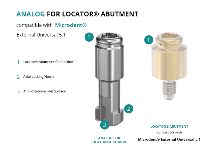 Analog for Locator® Abutment Compatible with Microdent® External Universal 5.1