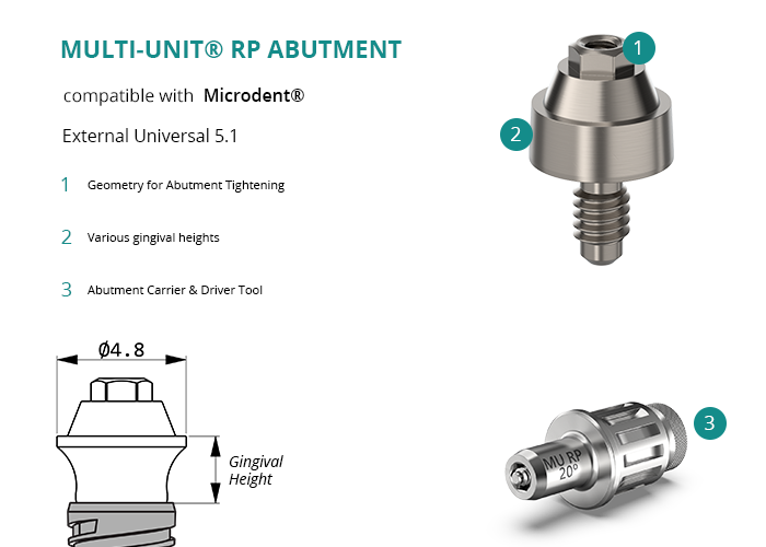 Multi-Unit® RP Abutment compatible with Microdent® External Universal 5.1