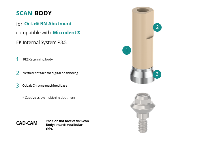 Scan Body for Octa® RN Abutment compatible with Microdent® EK Internal System P3.5