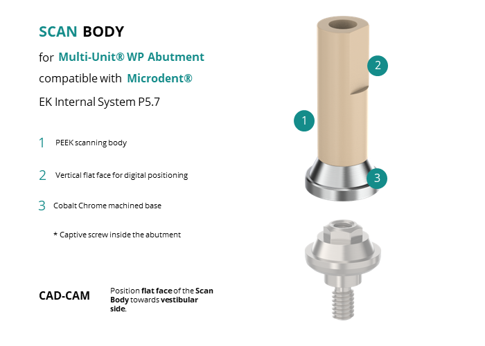 Scan Body for Multi-Unit® WP Abutment compatible with Microdent® EK Internal System P5.7