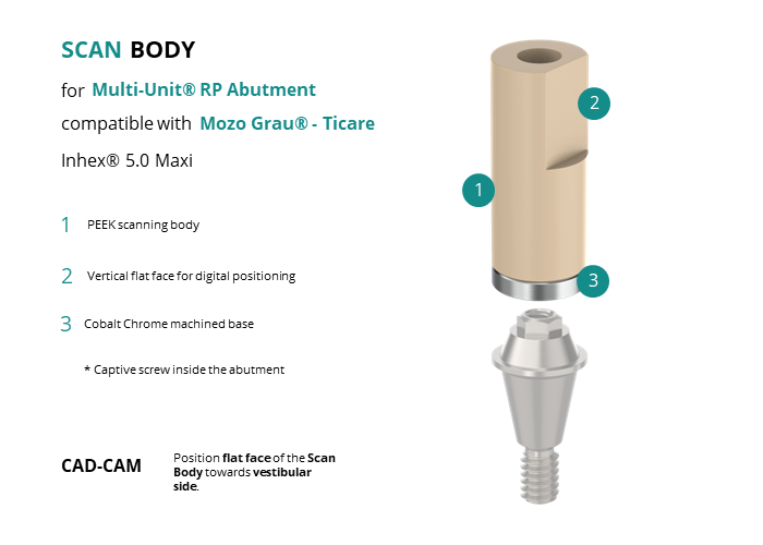 Scan Body for Multi-Unit® RP Abutment compatible with Mozo Grau® - Ticare Inhex® 5.0 Maxi