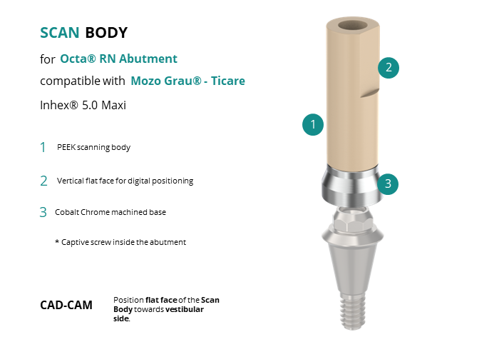 Scan Body for Octa® RN Abutment compatible with Mozo Grau® - Ticare Inhex® 5.0 Maxi