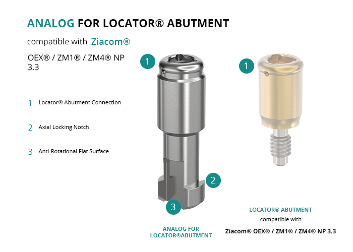 Analog for Locator® Abutment Compatible with Ziacom® OEX® / ZM1® / ZM4® NP 3.3