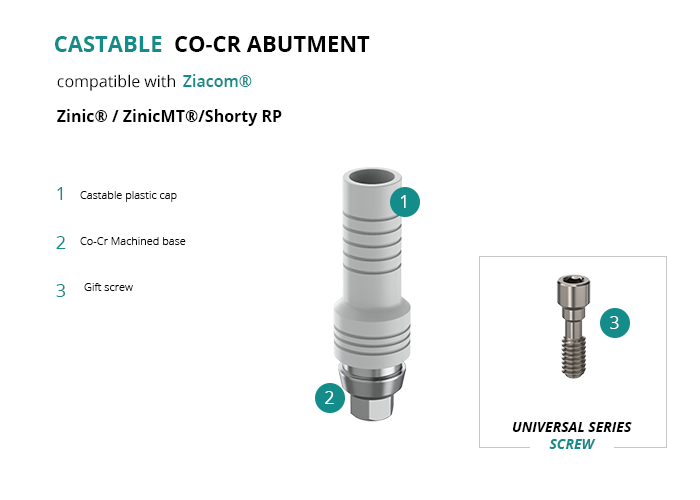 Castable Abutment with Co-Cr Base compatible with Ziacom® Zinic® / ZinicMT®/Shorty RP