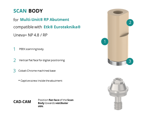 Scan Body for Multi-Unit® RP Abutment compatible with Etk® Euroteknika® Uneva+ NP 4.8 / RP