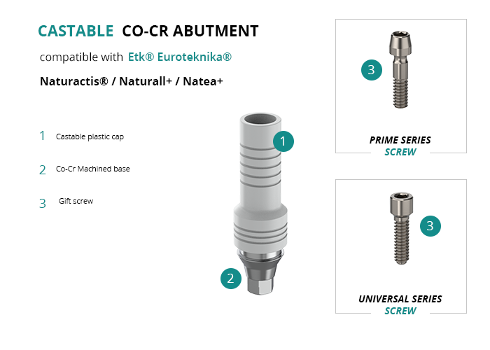 Castable Abutment with Co-Cr Base compatible with Etk® Euroteknika® Naturactis® / Naturall+ / Natea+
