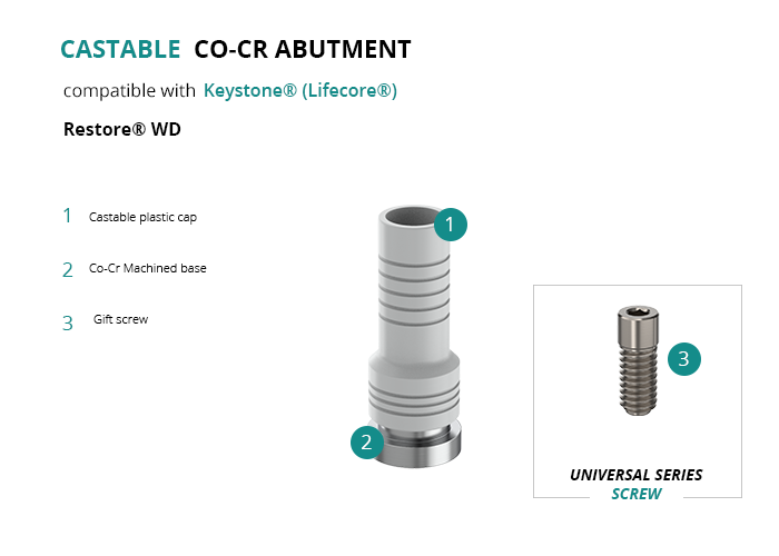 Castable Abutment with Co-Cr Base compatible with Keystone® (Lifecore®) Restore® WD