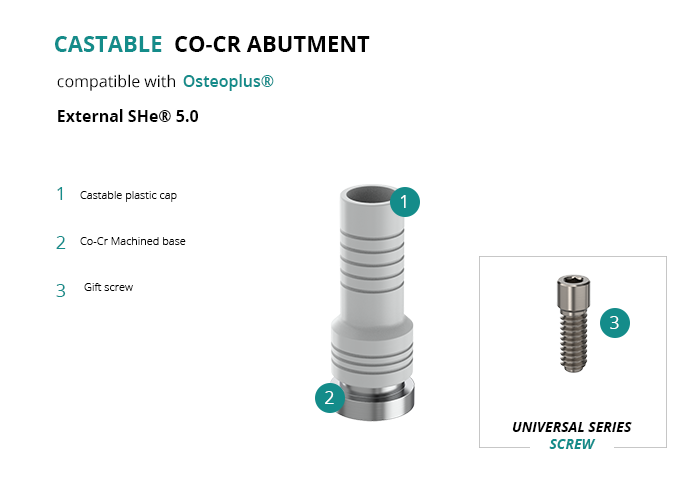 Castable Abutment with Co-Cr Base compatible with Osteoplus® External SHe® 5.0