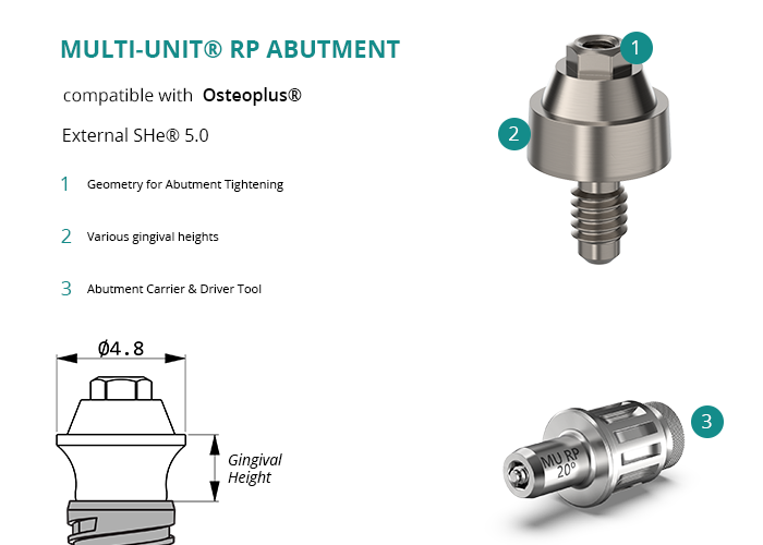 Multi-Unit® RP Abutment compatible with Osteoplus® External SHe® 5.0