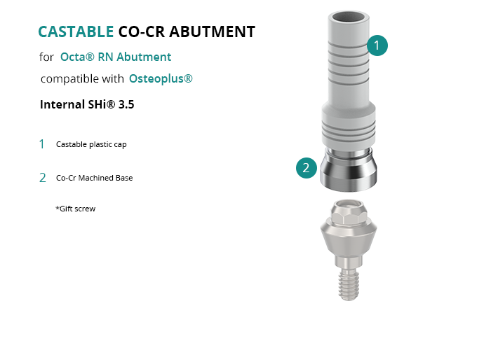 Castable Abutment with Co-Cr Base for Octa® RN Abutment compatible with Osteoplus® Internal SHi® 3.5