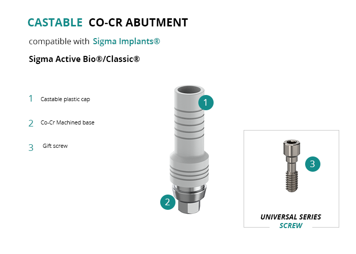 Castable Abutment with Co-Cr Base compatible with Sigma Implants® Sigma Active Bio®/Classic®