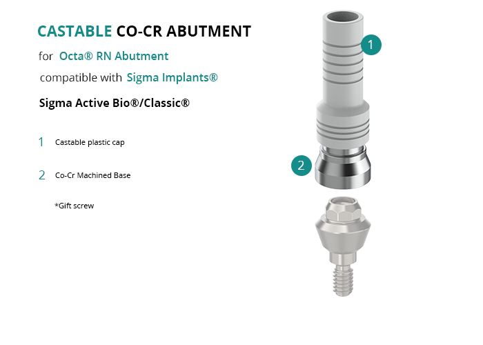 Castable Abutment with Co-Cr Base for Octa® RN Abutment compatible with Sigma Implants® Sigma Active Bio®/Classic®