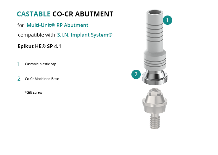 Castable Abutment with Co-Cr Base for Multi-Unit® RP Abutment compatible with S.I.N. Implant System® Epikut HE® SP 4.1