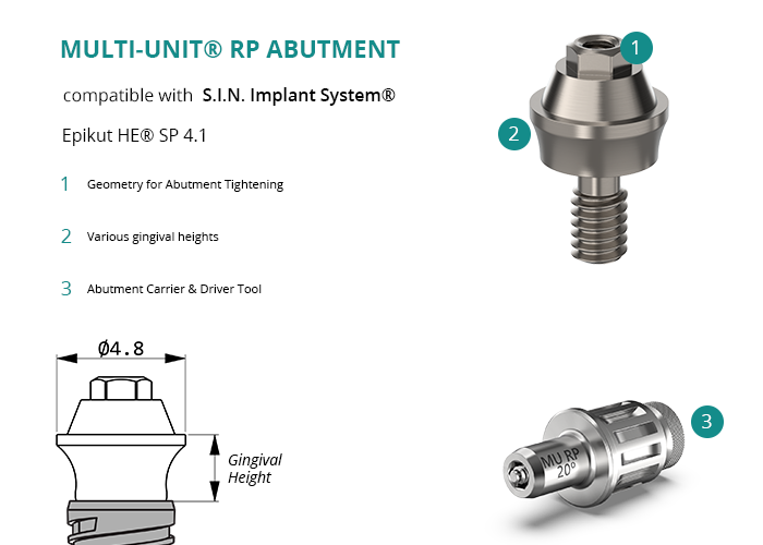 Multi-Unit® RP Abutment compatible with S.I.N. Implant System® Epikut HE® SP 4.1