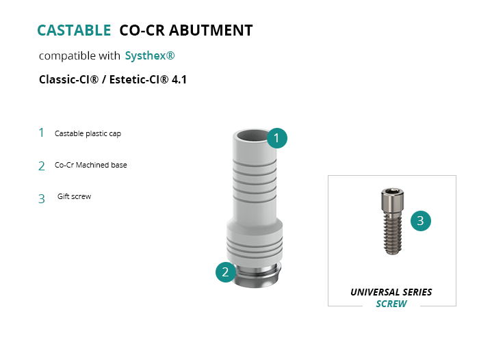 Castable Abutment with Co-Cr Base compatible with Systhex® Classic-CI® / Estetic-CI® 4.1