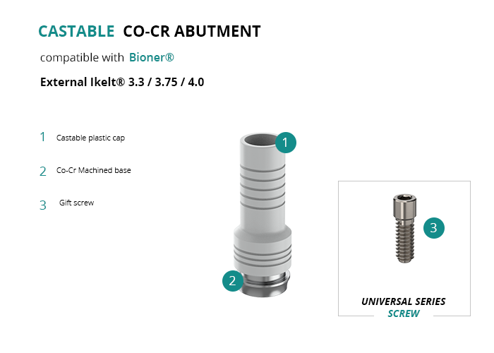 Castable Abutment with Co-Cr Base compatible with Bioner® External Ikelt® 3.3 / 3.75 / 4.0