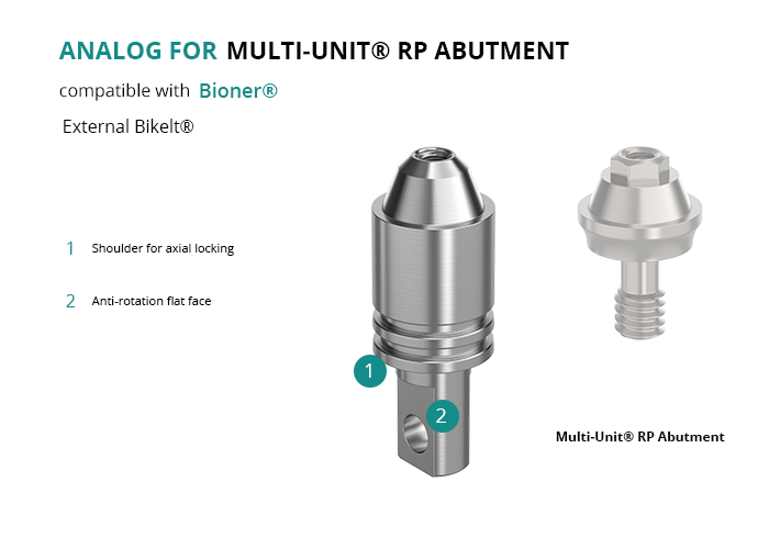 Analog for Multi-Unit® RP Abutment Compatible with Bioner® External Bikelt®