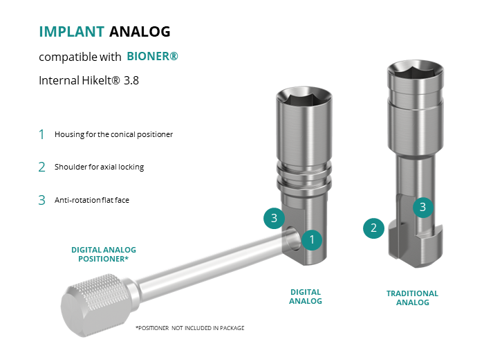 - Digital Analog: for models made of resin through 3D printing, locking is achieved using a slightly conical positioner, ensuring axial positioning.