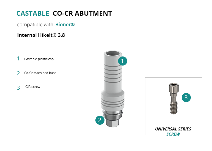 Castable Abutment with Co-Cr Base compatible with Bioner® Internal Hikelt® 3.8