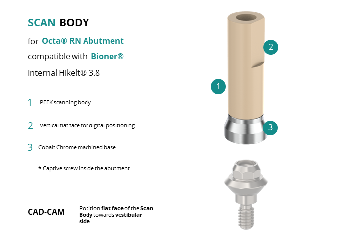 Scan Body for Octa® RN Abutment compatible with Bioner® Internal Hikelt® 3.8