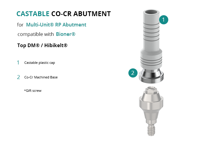 Castable Abutment with Co-Cr Base for Multi-Unit® RP Abutment compatible with Bioner® Top DM® / Hibikelt®