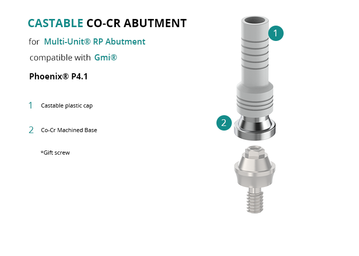 Castable Abutment with Co-Cr Base for Multi-Unit® RP Abutment compatible with Gmi® Phoenix® P4.1