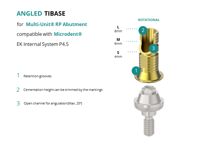 Angled Titanium Base for Multi-Unit® RP Abutment compatible with Microdent® EK Internal System P4.5