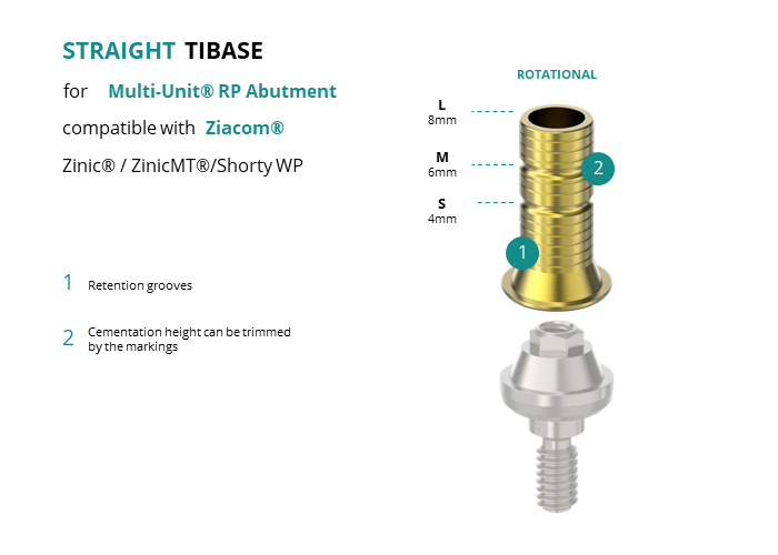 Titanium Straight Base for Multi-Unit® RP Abutment compatible with Ziacom® Zinic® / ZinicMT®/Shorty WP