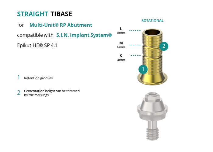 Titanium Straight Base for Multi-Unit® RP Abutment compatible with S.I.N. Implant System® Epikut HE® SP 4.1