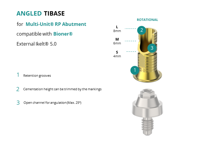 Angled Titanium Base for Multi-Unit® RP Abutment compatible with Bioner® External Ikelt® 5.0
