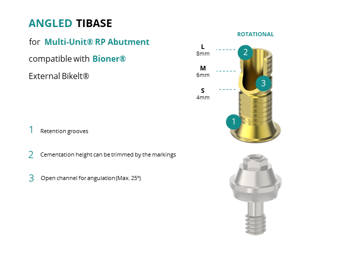 Angled Titanium Base for Multi-Unit® RP Abutment compatible with Bioner® External Bikelt®