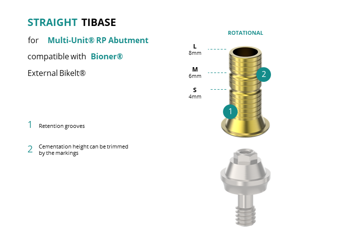 Titanium Straight Base for Multi-Unit® RP Abutment compatible with Bioner® External Bikelt®