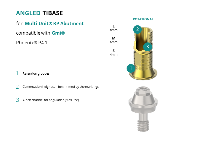 Angled Titanium Base for Multi-Unit® RP Abutment compatible with Gmi® Phoenix® P4.1