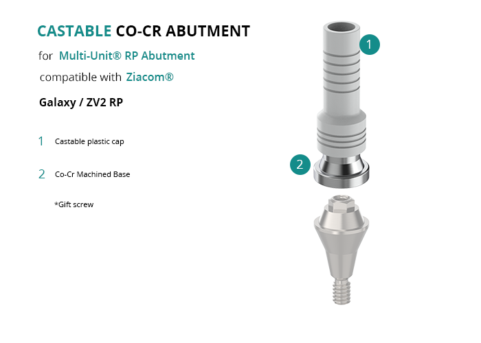 Castable Abutment with Co-Cr Base for Multi-Unit® RP Abutment compatible with Ziacom® Galaxy / ZV2 RP