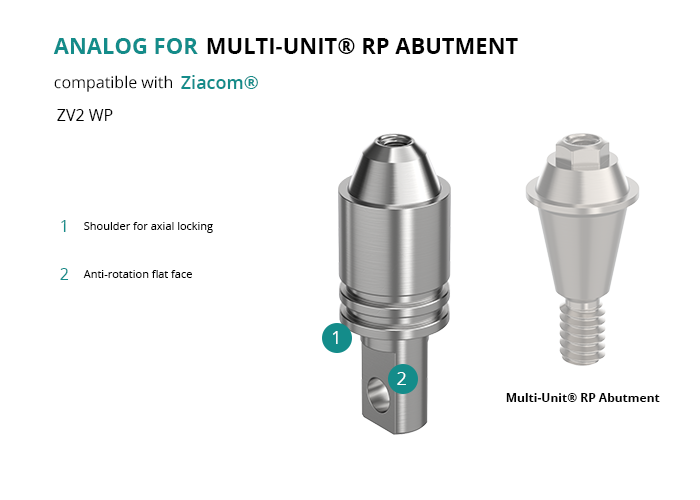Analog for Multi-Unit® RP Abutment Compatible with Ziacom® ZV2 WP
