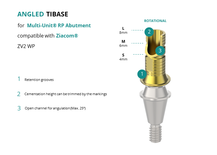 Angled Titanium Base for Multi-Unit® RP Abutment compatible with Ziacom® ZV2 WP