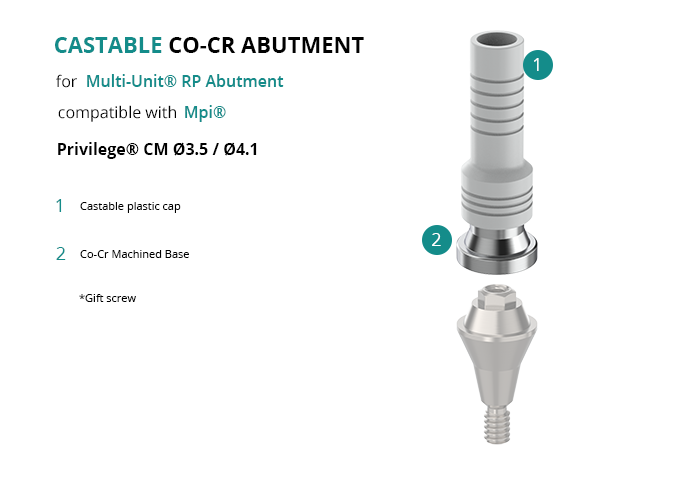Castable Abutment with Co-Cr Base for Multi-Unit® RP Abutment compatible with Mpi® Privilege® CM Ø3.5 / Ø4.1