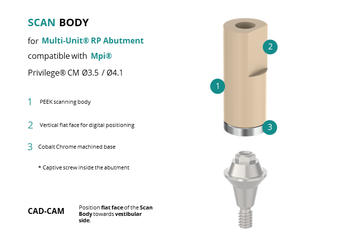Scan Body for Multi-Unit® RP Abutment compatible with Mpi® Privilege® CM Ø3.5 / Ø4.1