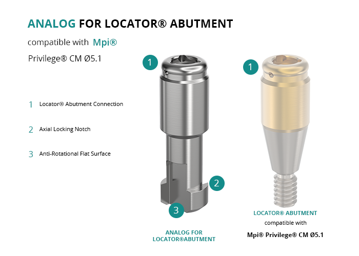 Analog for Locator® Abutment Compatible with Mpi® Privilege® CM Ø5.1
