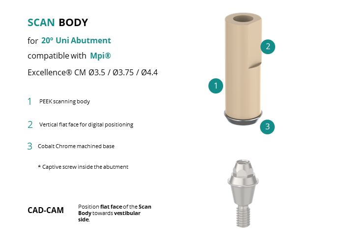 Scan Body for 20� Uni Abutment compatible with Mpi® Excellence® CM Ø3.5 / Ø3.75 / Ø4.4