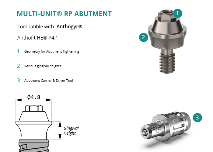 Multi-Unit® RP Abutment compatible with Anthogyr® Anthofit HE® P4.1
