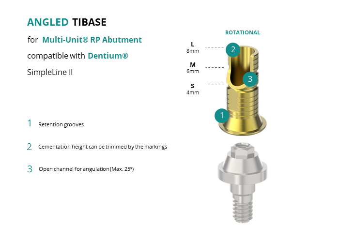 Angled Titanium Base for Multi-Unit® RP Abutment compatible with Dentium® SimpleLine II